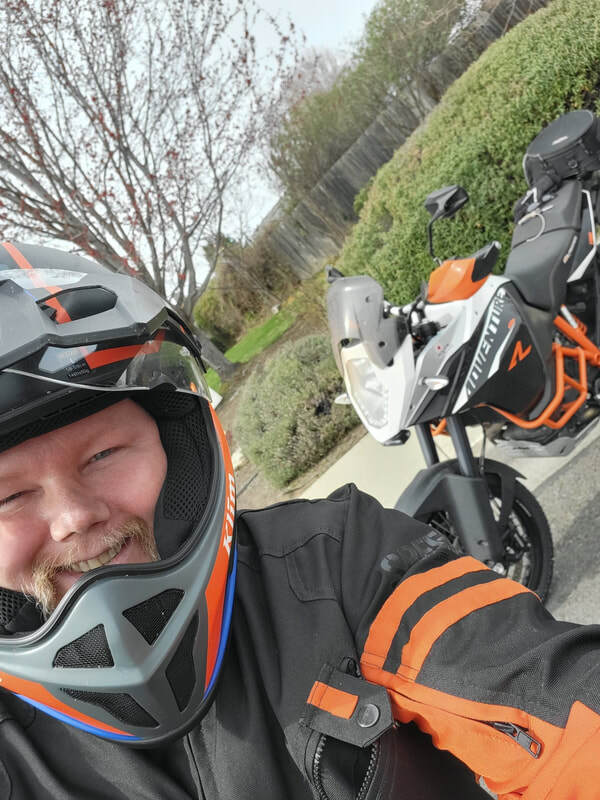 He began riding motorcycles in 2012 after buying a Harley Sportster sight unseen while deployed in Afghanistan, and fell in love with riding. He now rides a KTM Adventure 1190.