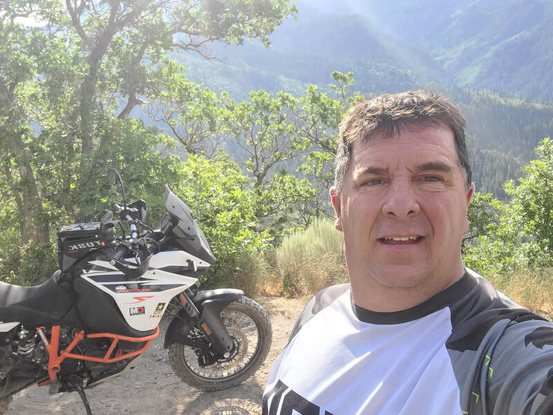 Growing up in Utah, Justin rode dirt bikes his whole life. In 2012 he got a KLR 650 and his current bike is a KTM Adventure 1090R that he rode in the KTM Rally in Deer Valley, UT. Justin and his wife Carolyn live in Eagle, Mountain, UT and they have six kids; Brandon 22, Kayleigh 22, Grace, Conner 13, Abby 9, and newly adopted baby, Cameron 17 months-old.